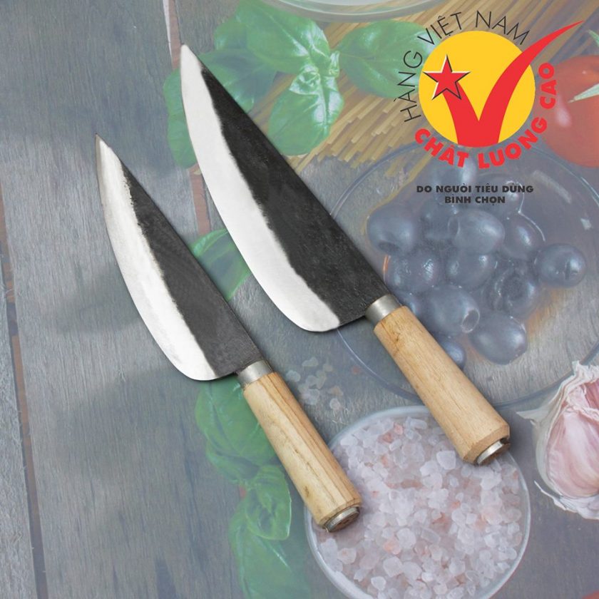 ? Bộ dao gia đình được làm 100% Rèn thủ công từ Nhíp xe Ô Tô #Nga cao cấp, Chuôi gỗ xoan Đào chắc chắn được làm ra từ bởi những nghệ nhân hàng đầu xưởng rèn thủ công Làng Rèn Truyền Thống Hậu Lộc – Thanh Hóa