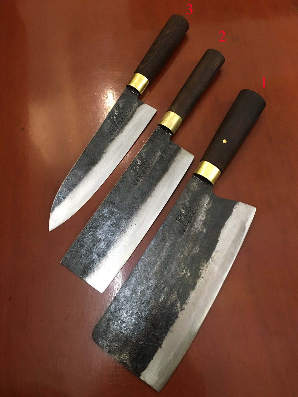 🔥 Bộ dao gia đình được làm 100% Rèn thủ công từ Nhíp xe Ô Tô #Ngacaocấp, Chuôi gỗ cẩm chỉ núi đá Tây Bắc chắc chắn được làm ra từ bởi những nghệ nhân hàng đầu xưởng rèn thủ công Làng Rèn Truyền Thống Hậu Lộc – Thanh Hóa